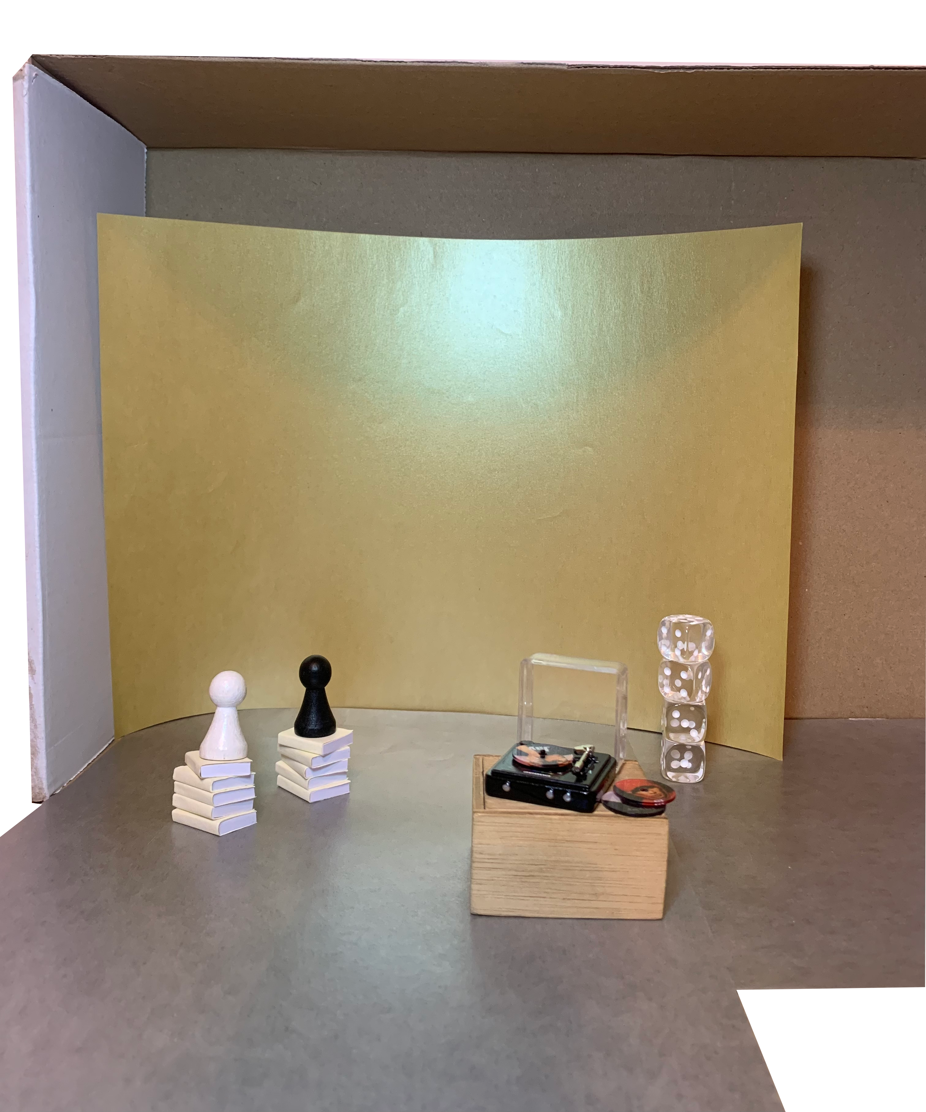 Die Improvisation is an intimate, narrative practice that explores the possibility of telling stories through space itself. In these miniature environments, architecture, voids, textures, and scale become expressive tools—a language that allows emotions and ideas to manifest without relying on words. What began as minimal interventions soon evolved into small stage-like worlds where stories could unfold: places shaped through fragile materials yet charged with symbolic weight. Each space became a vessel for internal landscapes, imagined narratives, and emotional movements, turning the act of building into a way of inhabiting and giving form to my own experiences.